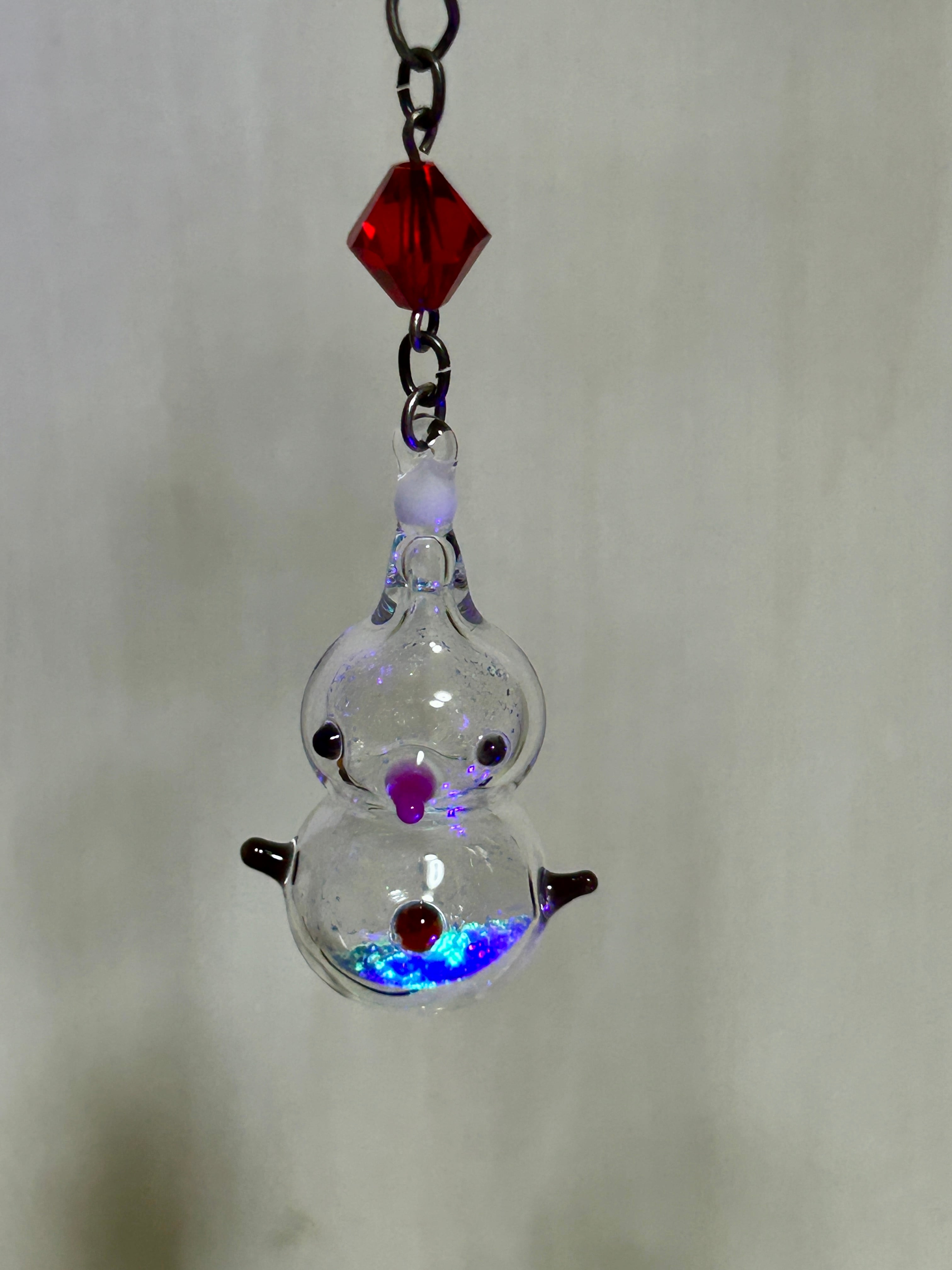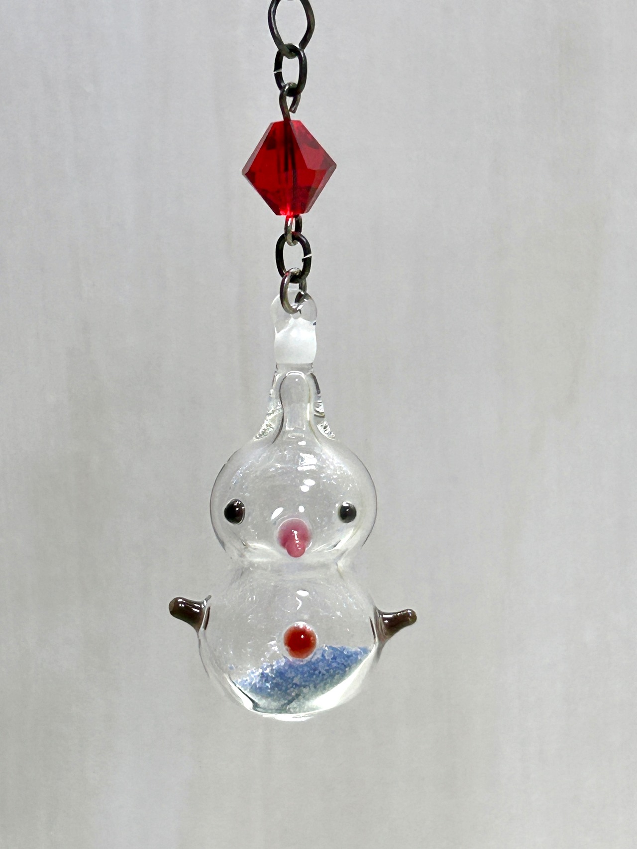 中空のスノーマンには光る砂が入っており、光をためると暗闇で優雅にきらめき、まるで雪の妖精が舞い降りたかのような幻想的な雰囲気を演出します!
