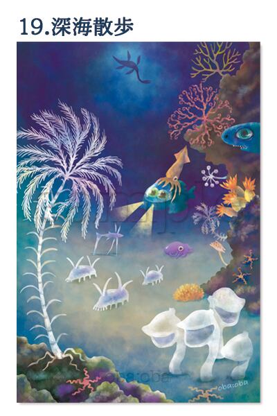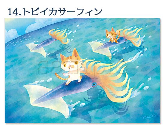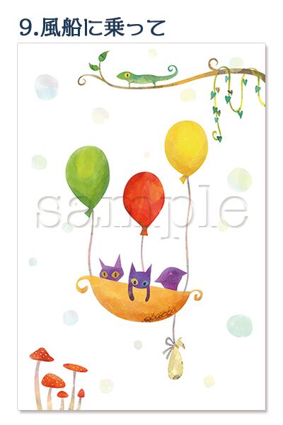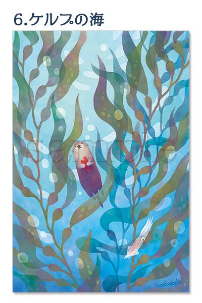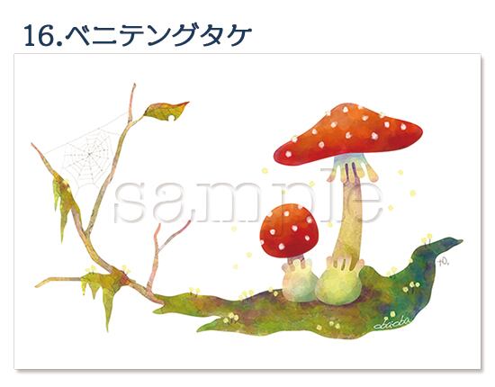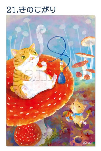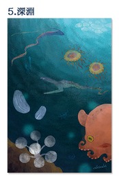海洋生物やキノコや猫のイラストポストカード2枚セット