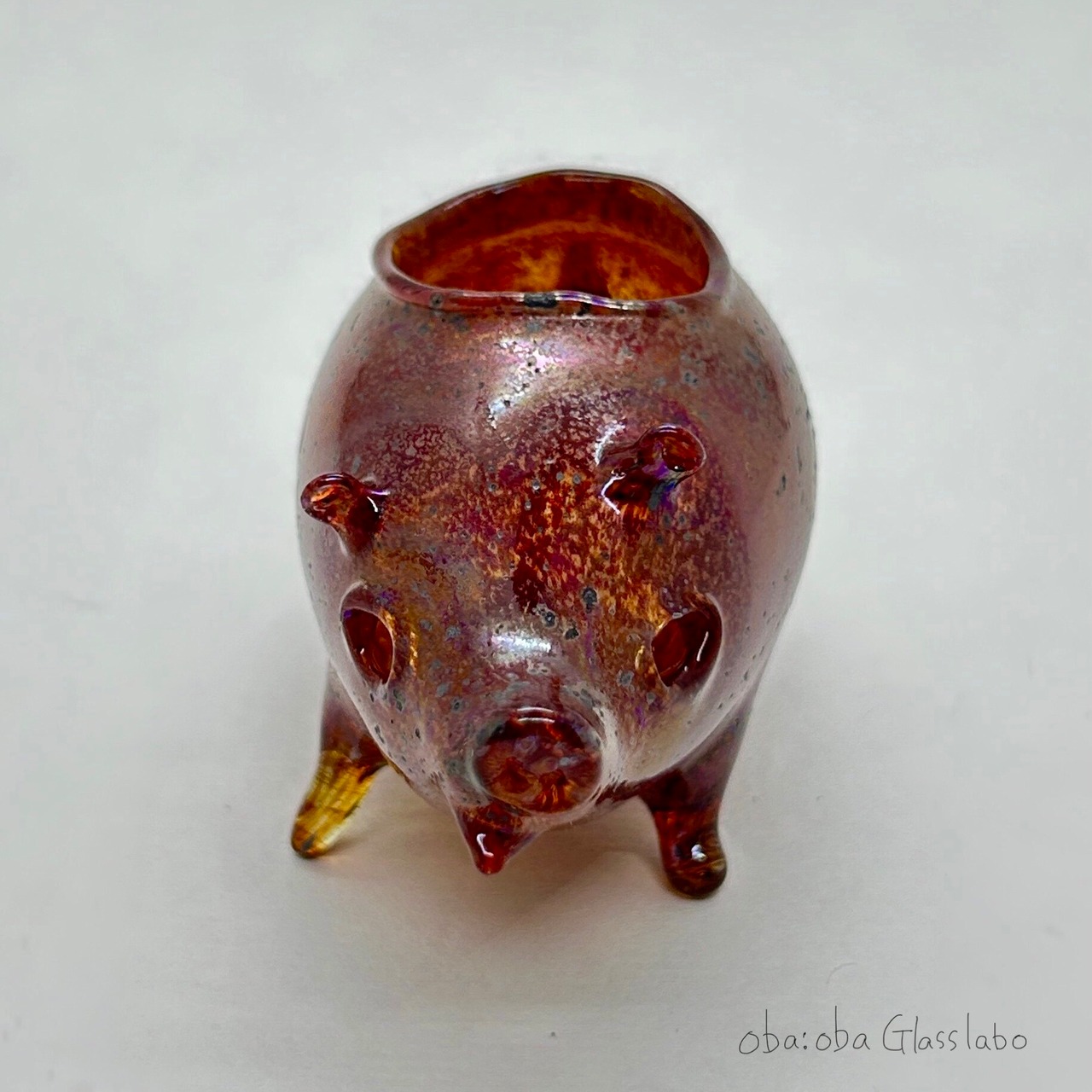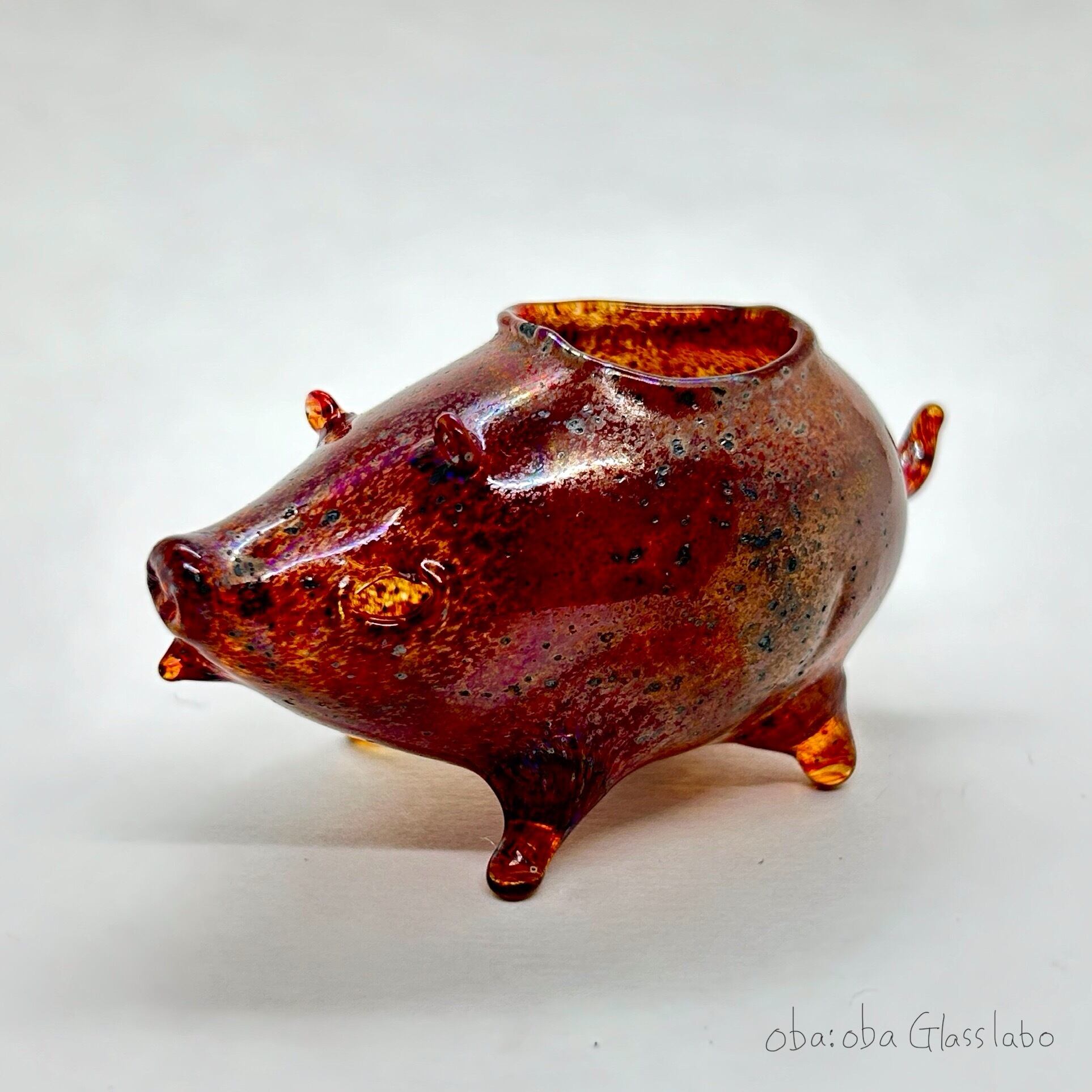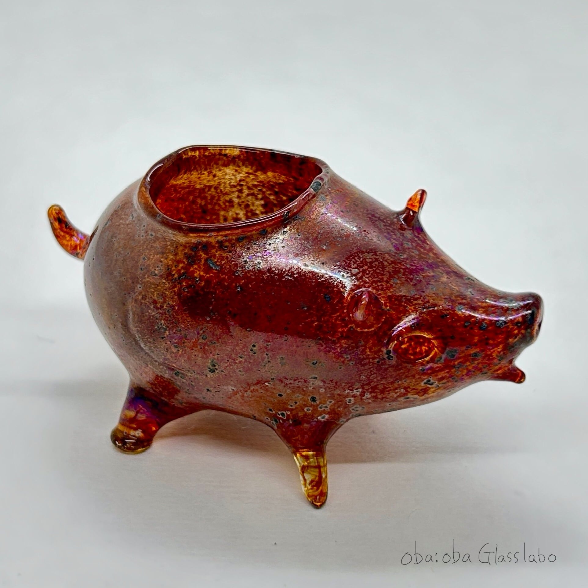 古のイノシシ型土製品をモチーフのガラス製ポットです。